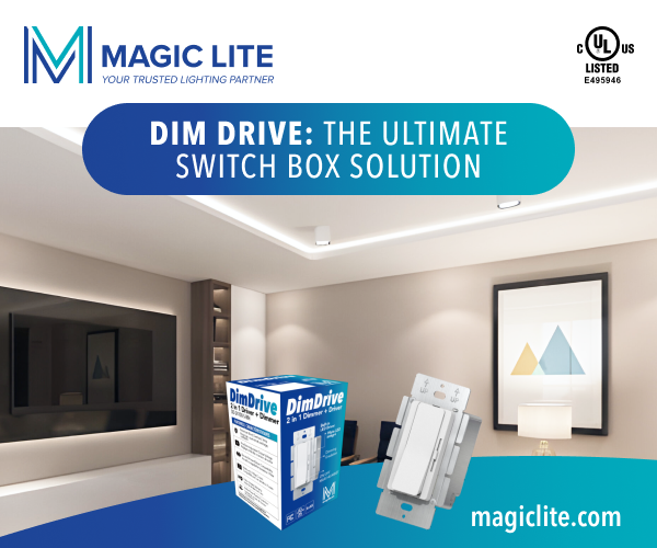 Dim Drive revolutionizes LED installations by combining driver, dimmer, and switch in one compact device. Fits standard single-gang or multi-gang boxes. Choose 60W or 100W models for any project size. Delivers flicker-free performance with 0.3%-100% dimming range. Backed by Magic Lite's 5-year warranty and 40+ years of innovation.