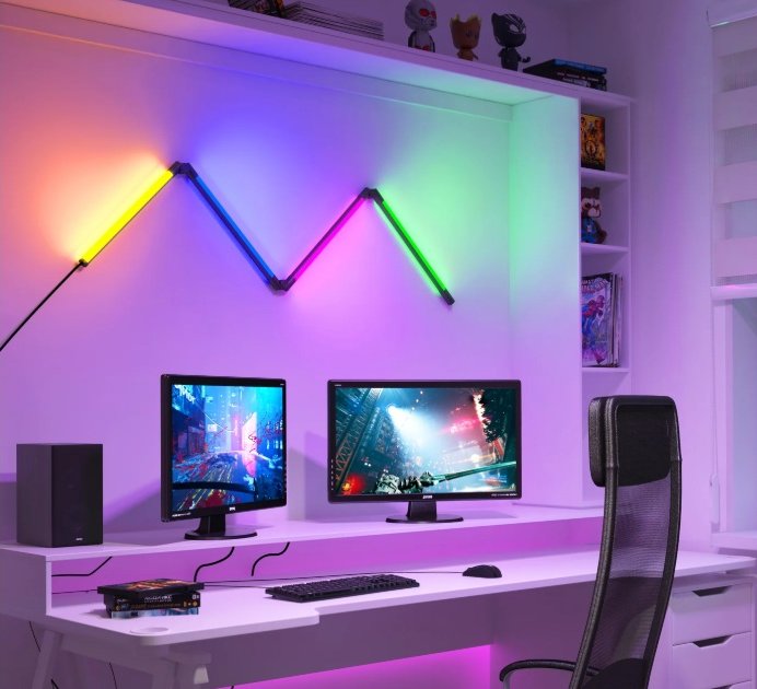 With four adjustable, multicolour modules, the Fitch Smart LED floor lamp adapts to any setting. Use the base to stand it upright in the living room or mount it on the wall in a game room for a dynamic light bar effect. Control everything through the Artika Smart app. Choose the colour of each module from millions of options, including multiple white tones. Adjust brightness, pick from preset modes, apply special effects, or sync the lighting with music. Output: 1,000 lumens. Lifespan: 50,000 hours... Read More