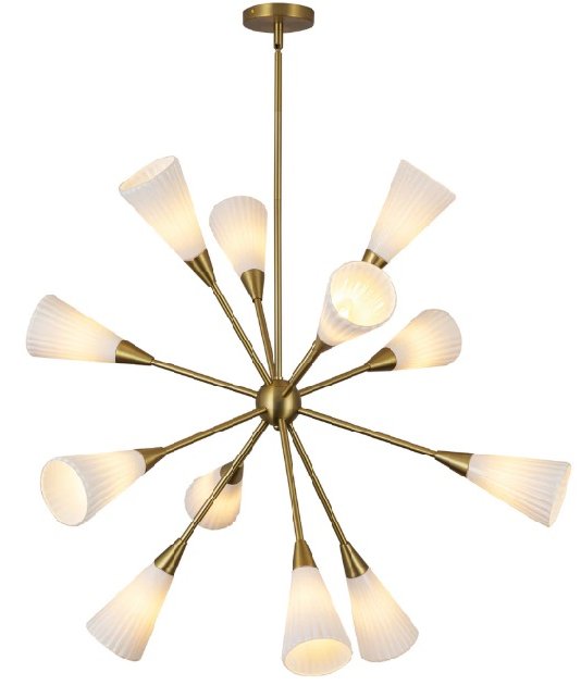 Transform your space with the Cosmo lighting collection—a modern take on the timeless mid-century sputnik chandelier. Featuring opal ribbed glass shades, Cosmo adds a touch of sleek sophistication and a bold, contemporary feel to any room's vibe. Designed for living room, dining room, foyer, bedroom, and beyond. Sloped ceiling adaptable, see specs... Read More