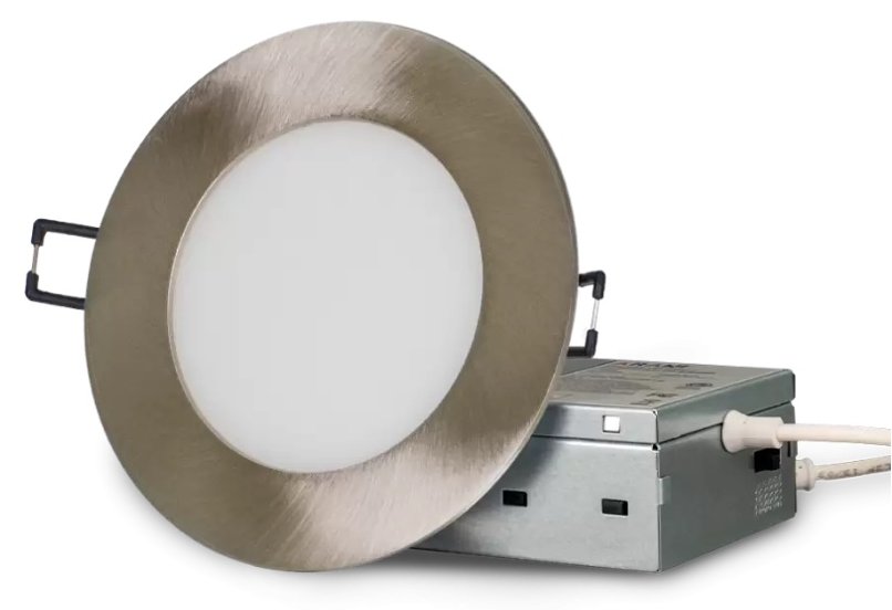 The SL4-VAR-R-BN-V4 is a 4" LED slim panel with a clean brushed nickel trim, built for recessed ceiling applications in residential and commercial settings. It offers 5 selectable color temperatures (2700K to 5000K), smooth Triac dimming, and now delivers up to 725 lumens at 4000K, providing improved brightness without added energy use. This IC-rated fixture is approved for wet locations, making it ideal for bathrooms, kitchens, and insulated ceilings. Its ultra-slim aluminum housing and frosted PMMA lens offer a modern, low-profile finish. Includes... Read More